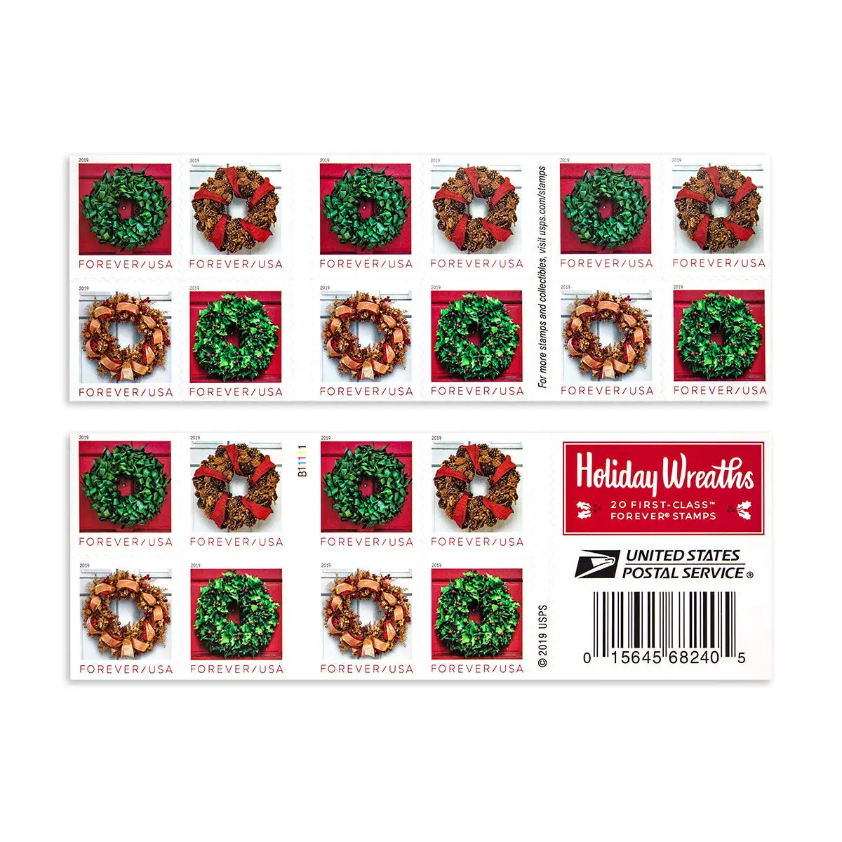 2019 Christmas Seasonal Holiday Wreaths Forever First Class Postage Stamps