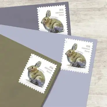 In 2021, the United States Postal Service issued a new non-denominated additional-ounce stamp. ?It was printed in two formats ¡§C a pane of 20 and coil of 100 ¡§C and pictured a brush rabbit. ?The stamp design featured existing artwork by designer and illustrator Dugald Stermer. ?Stermer was well known for his pencil and watercolor techniques, and was fond of painting flora and fauna.