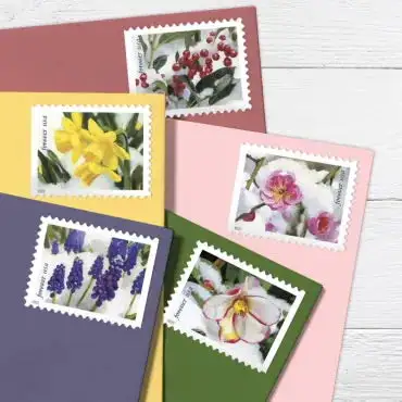 While most plants and flowers die off during the winter, there are some that break the mold and grow despite the cold and snow. ?Some species bloom mid-winter in temperate climates, while others bloom toward the end of winter in more northern regions. ?In 2022, the USPS issued a set of 10 Forever stamps picturing flowers that can withstand the snow. ?The stamps show: ?camellia, winter aconite, crocus, hellebore, winterberry, pansy, plum blossom, grape hyacinth, daffodil, and ranunculus.