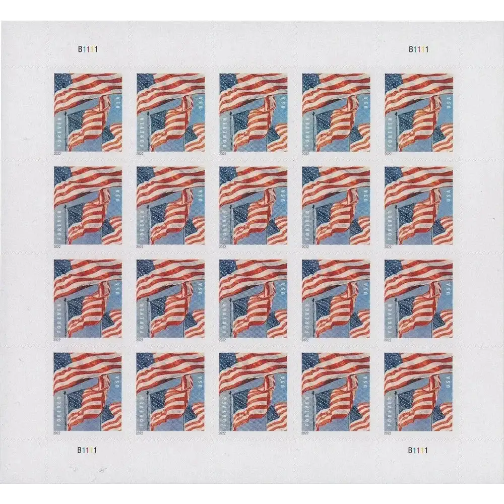 The stamp art is a painting of three flags in a circular formation, reminiscent of the 50 flags encircling the Washington Monument. The artist used three separate photographs of the same flag taken seconds apart as reference and stitched together the images into a single composition. Laura Stutzman was the stamp designer and illustrator. Ethel Kessler was the art director.