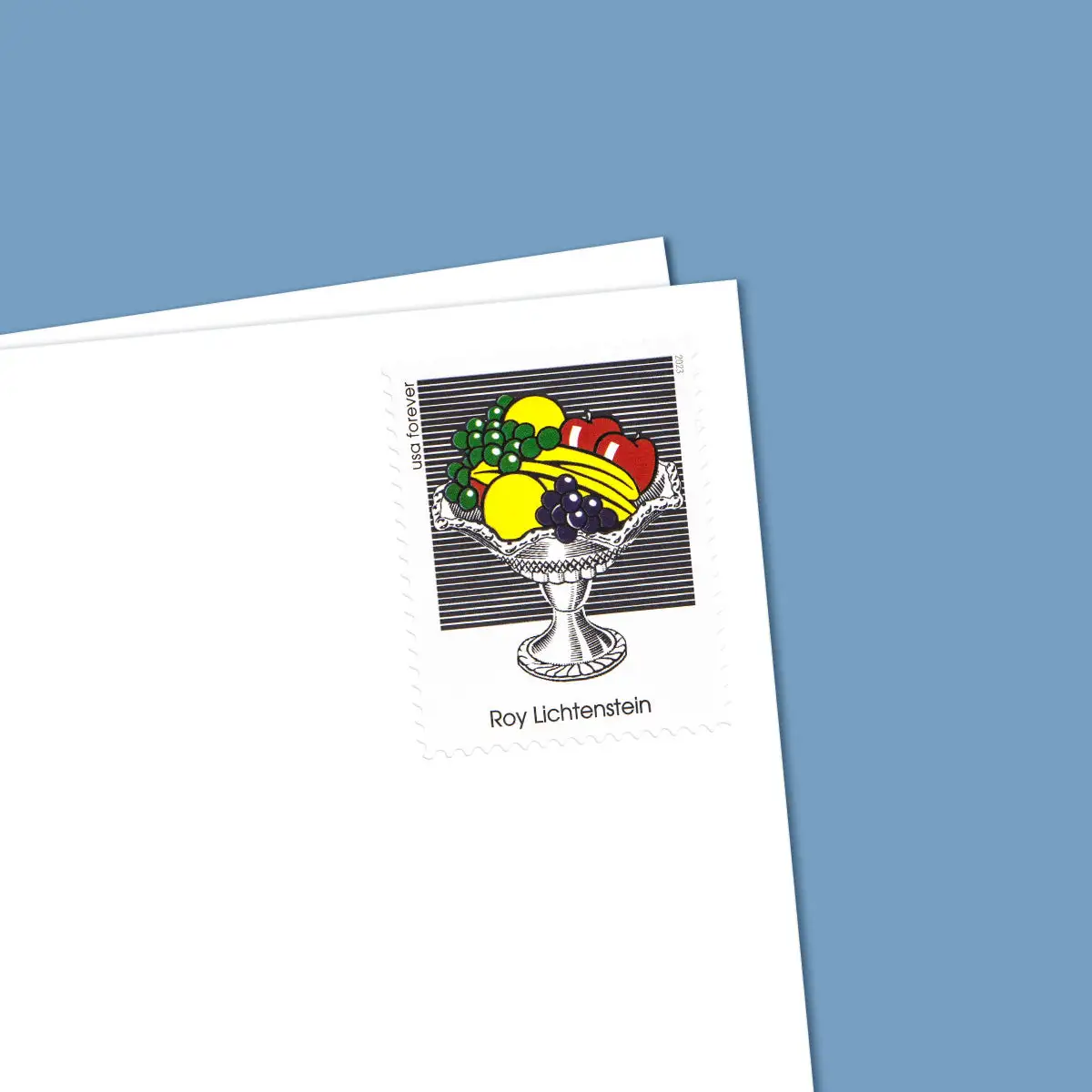 Roy Lichtenstein is honored with a stamp featuring his renowned work “Still Life with Crystal Bowl” (1972). The issuance took place on April 24, 2023, at the Whitney Museum of American Art in NYC. The set comprises five stamps highlighting different pieces by Lichtenstein. His experimental landscapes, influenced by comic art, showcase his distinctive Pop Art style. These landscapes, whether representational or abstract, demonstrate Lichtenstein’s innovative use of materials. In his later years, he revisited landscapes, concentrating on classical Chinese landscapes using halftone dots.